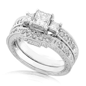 This gorgeous wedding ring set features a 0.40 carat Princess cut center and 1/4ctw Princess side diamonds in HI/SI