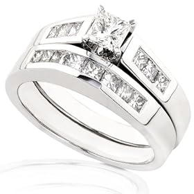 7/8ctw Princess Cut Diamond Wedding Set in 14k White Gold (HI/I1)