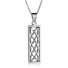 Sterling Silver Celtic Design Rectangular Dangle Pendant, 18"