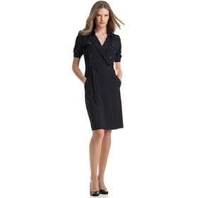 Classic pinstripes go office-ready chic in this belted shirtdress by Calvin Klein.
