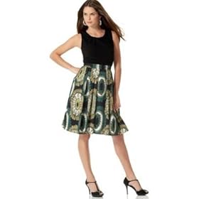 The look of a solid tank and printed skirt in one chic piece from Taylor.
