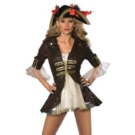 Womens Costume Adult High Seas Pirate Sexy Buccaneer Swashbuckler Short Brown Dress Party Outfit